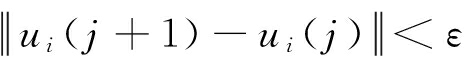 得到新的聚类中心后,重新按照最小误差平方和的原则对样本重新进行分类,再按式(5)得到新的聚类中心,直到前后2次聚类中心的距离差达到一个很小的误差精度ε(ε>0),如式(6)所示。