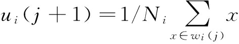 K-means算法[14-15]是一种基于SSE(Sum of Squares for Error)的划分方法,其以快速的收敛速度、简洁的算法原理和高效的大数据处理能力得到了广泛的应用。样本集D分为K类,K个初始聚类中心ui(j)可被任意选取,j为迭代次数,初始值为1,N个样本数据被按照SSE的方法分到与其距离最小的聚类中心所属的类中,设第i类的样本为wi(j),样本数为Ni,重新按式(5)计算新的聚类中心。