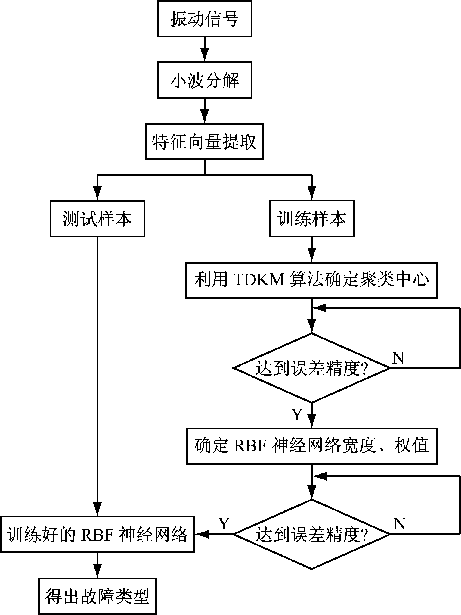 图1 基于TDKM-RBF神经网络的故障诊断算法流程