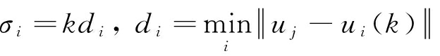 得到聚类中心后,按照新的聚类中心与其最近聚类中心之间的距离来计算RBF神经网络隐含层径向基的宽度,如式(7)所示。