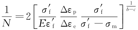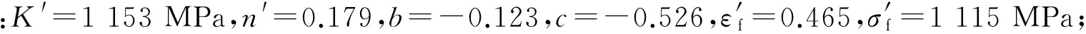 为疲劳延性系数;E为弹性模量;b为疲劳强度指数;c为疲劳延性指数;σm为平均应力;σ-1为许用应力疲劳值;K′为循环强度系数;n′为应变硬化指数。