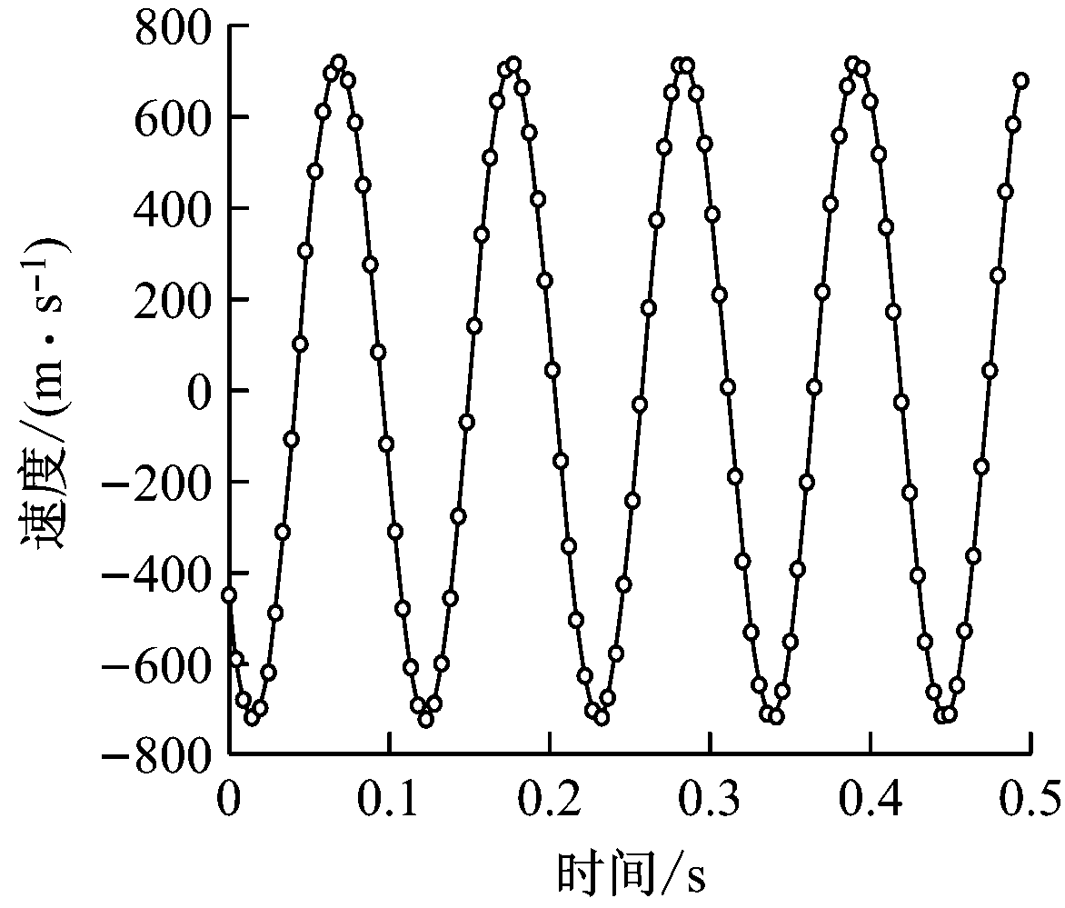 运用PROE软件建立好单边驱动式摇摆筛的三维模型后,首先需要对生成柔性体的部件进行材料属性设置,获得最终的刚柔模型。然后在应用程序中选择机构,按照摇摆筛的实际运动情况,设置运动仿真参数,进行刚柔耦合动力学仿真,分析得到摇摆筛稳定运转时偏心轴偏心段处的载荷历程及上筛框的速度变化历程,分别如图3、图4所示。