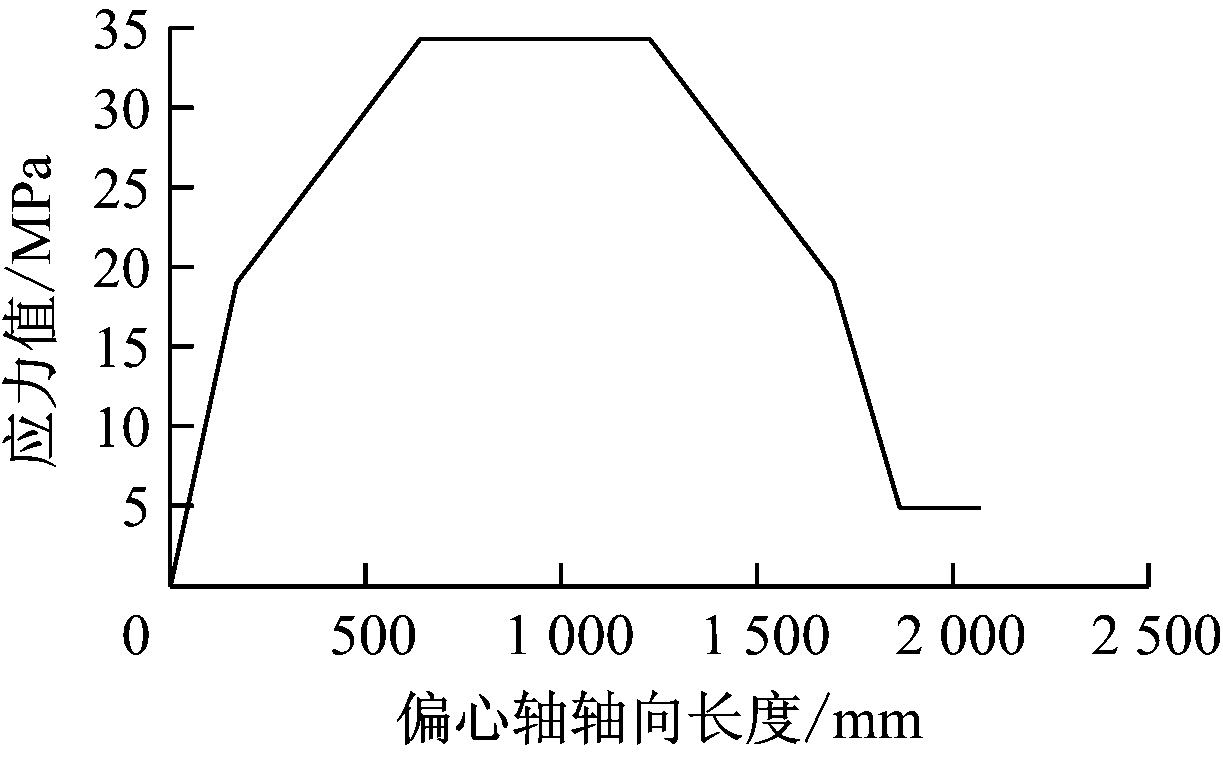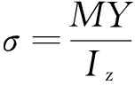 式中:T为扭矩;Wt为圆截面的抗扭界面系数,对于实心轴,Wt=πd3/16,d为实心轴直径;Y为计算点到中性轴距离的绝对值;Iz为横截面对中性轴的惯性矩,对于偏心轴外表面,Iz =πd4/64。
