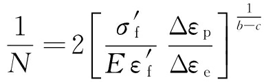 R.W.兰德格拉夫认为:损伤的大小由塑性应变幅Δεp与弹性应变幅Δεe的值来控制[14]。应变循环造成的损伤公式为