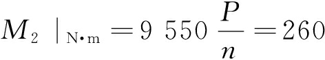 式中:P为胶带轮输入的功率,P=15 kW;n为偏心轴的转速,n=550 r/min。