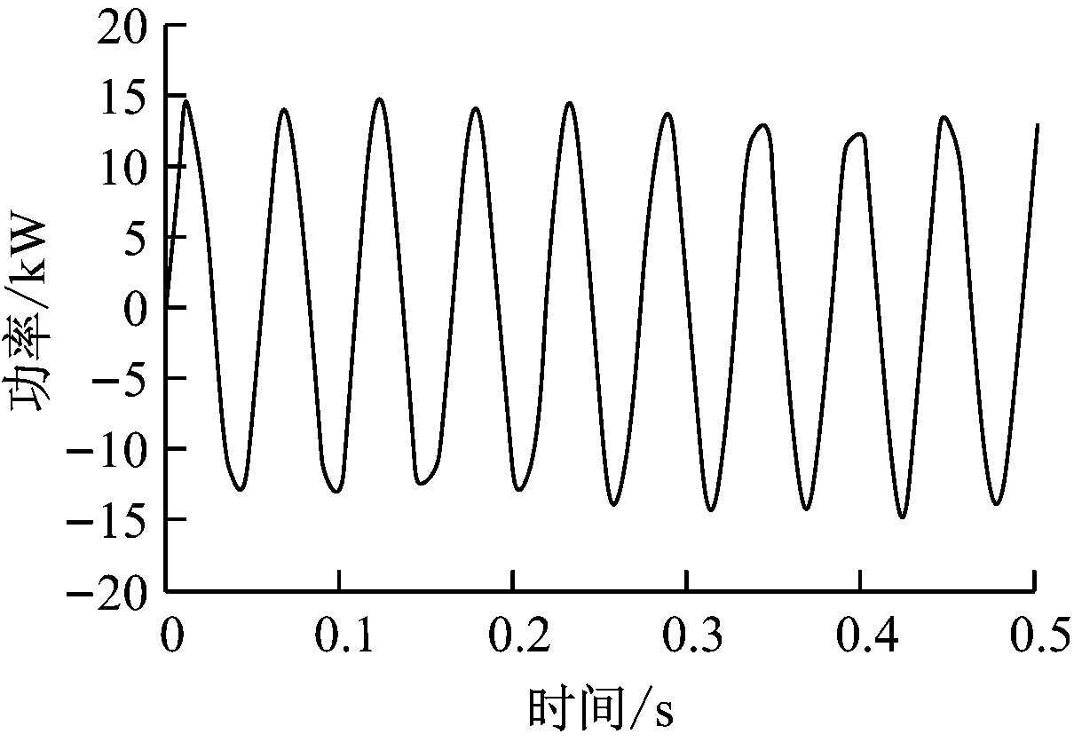 将载荷F和速度v随时间变化图导入Excel中,根据功率公式P=Fv求得上筛框运动过程中功率变化曲线,如图5所示。