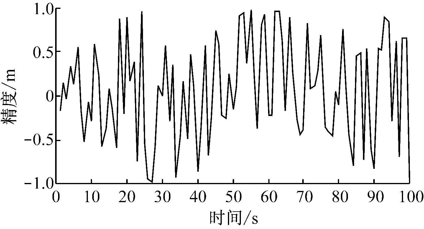 将20个人员标签随机部署在距离读卡器0~200 m位置处,读卡器以1 s的采样间隔获取各人员标签与读卡器之间的测试距离。参考文献[15]中定位精度评价方法,计算20个人员标签的测试距离和实际距离之间的误差,得出系统定位精度,如图3所示,可看出系统的定位精度达1 m。