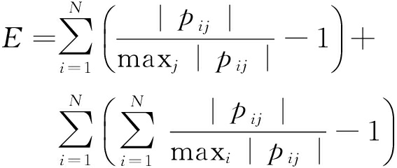 式中:pij为分离矩阵与混合矩阵相乘后矩阵中元素;maxi|pij|,maxj|pij|分别为相乘后矩阵中第i行、第j列元素绝对值的最大值。