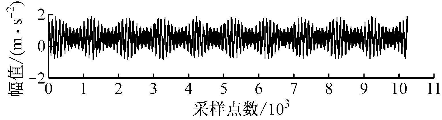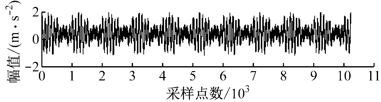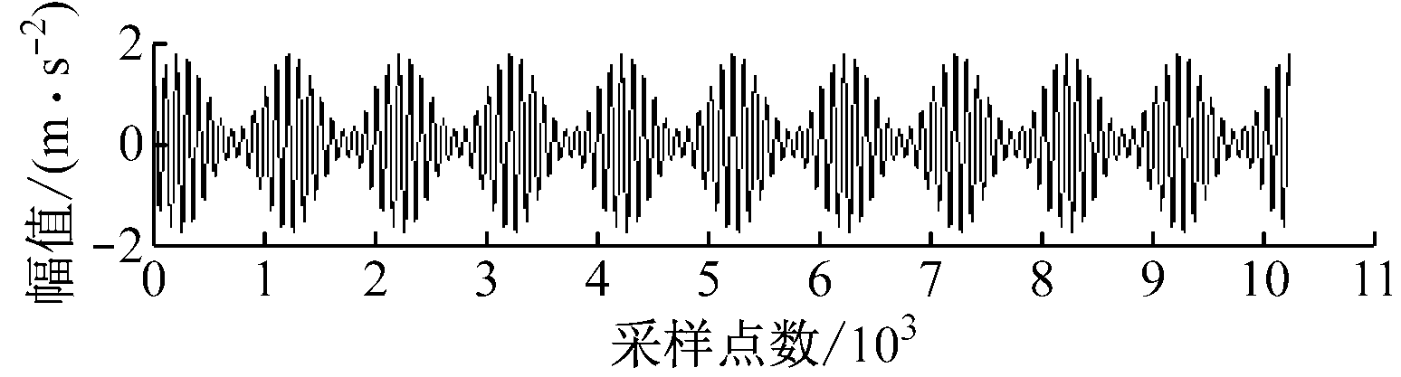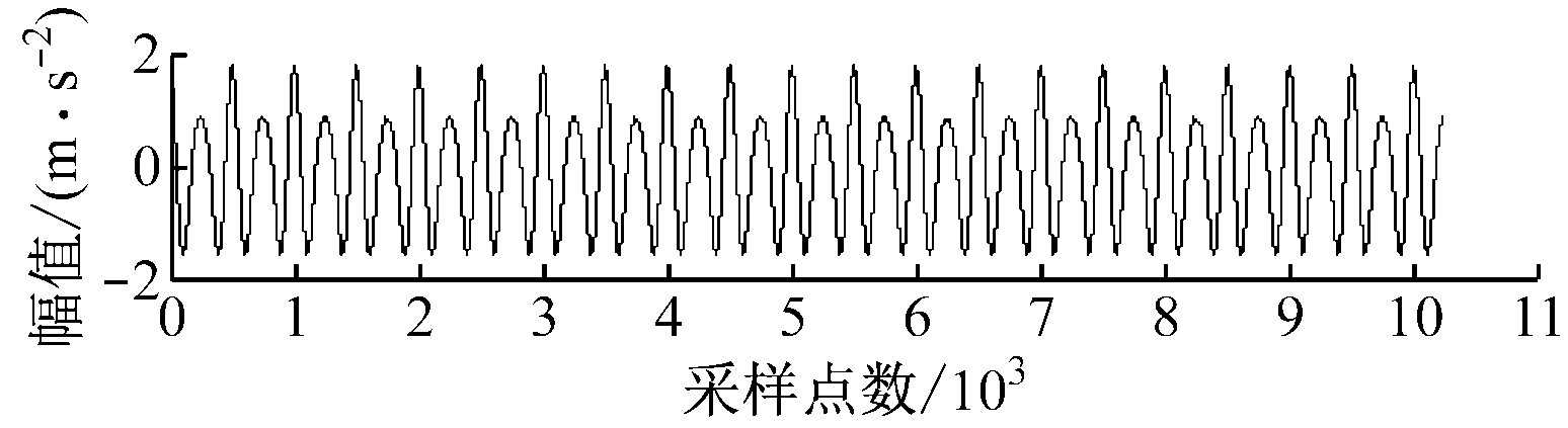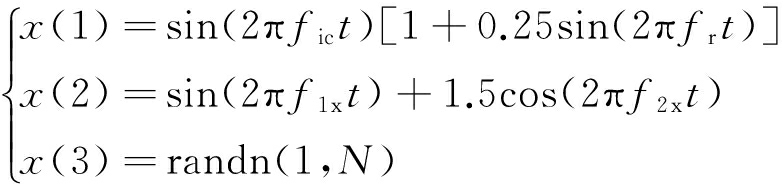 式中:x(1)为轴承故障模拟信号;fic为轴承故障频率;t为时间;fr为轴承旋转频率;x(2)为转子不对中故障模拟信号;f1x为转子旋转频率;f2x为转子旋转频率的二倍频;x(3)为背景噪声模拟信号;N为采样点数。