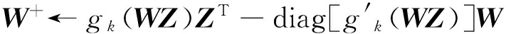 (1) 运行FastICA算法对数据进行预处理直到算法收敛,其中较常采用的非线性函数为g(s)=tanh(s)或g(s)=s/(1+s2)。