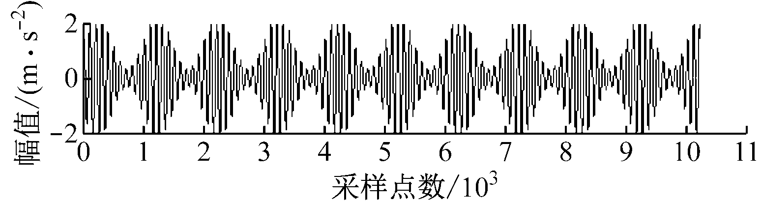 仿真参数:fic=100 Hz,fr=30 Hz,f1x=30 Hz,f2x=60 Hz,N=10 240,采样频率为1 000 Hz。模拟信号波形如图1所示。