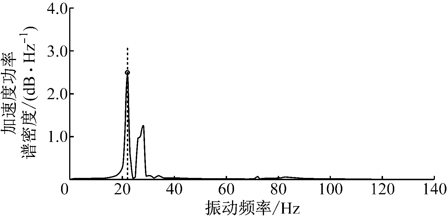 图5 第6层南区楼板振动加速度功率谱密度曲线