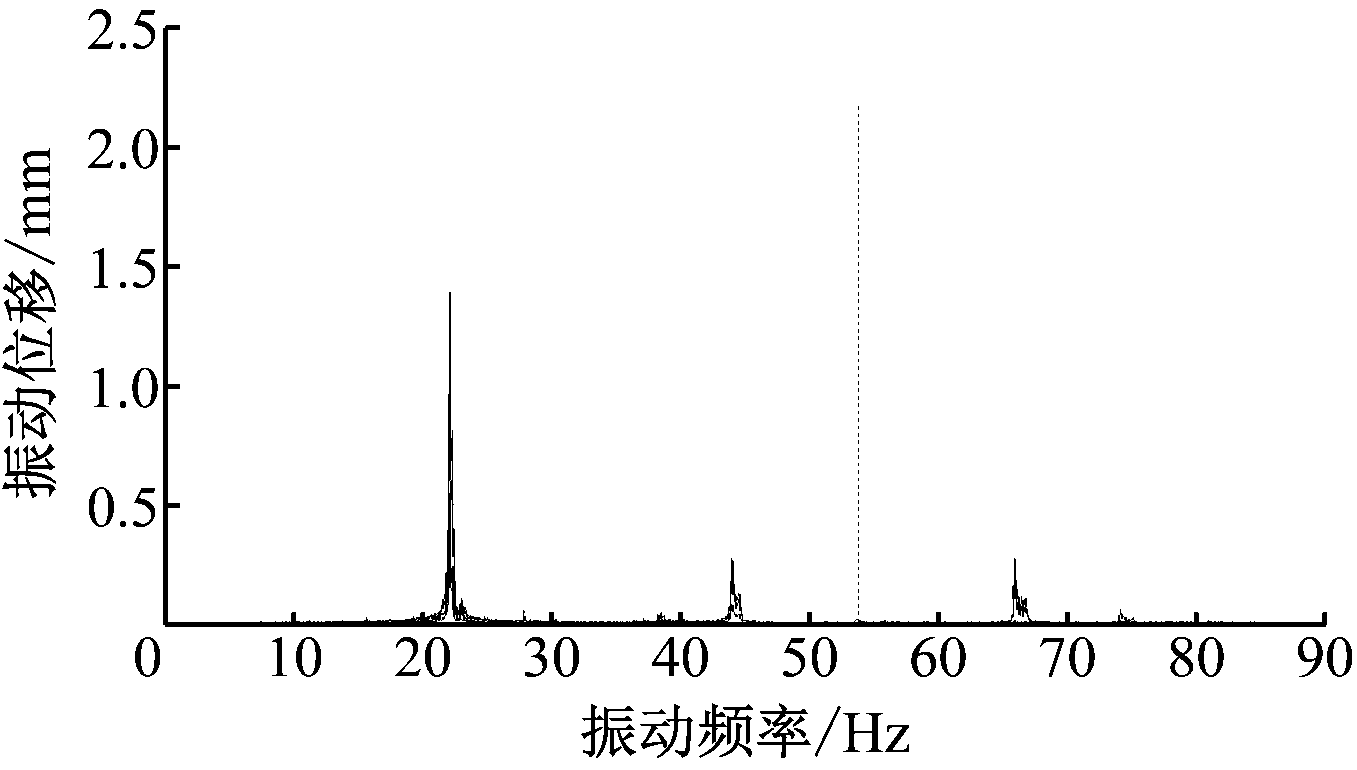 图3 轴承基座振动位移与频率的关系曲线