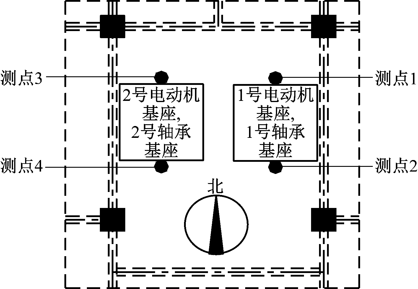 图2 电动机及轴承基座测点布置