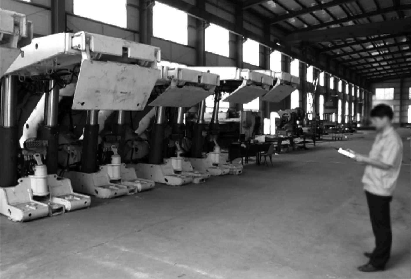 制作了无线液压支架控制器样机,并在6台液压支架和6套模拟测试箱组成的系统上进行了测试,如图6所示。经过测试,该控制器可以实现对本架部分动作控制(考虑安全因素,不允许对本架进行升/降柱、推溜/移架控制)、相邻5架所有动作的控制、支架成组动作,还可设置架号、控制范围、动作持续时间等参数。相邻第5台液压支架的动作响应时间为500 ms。
