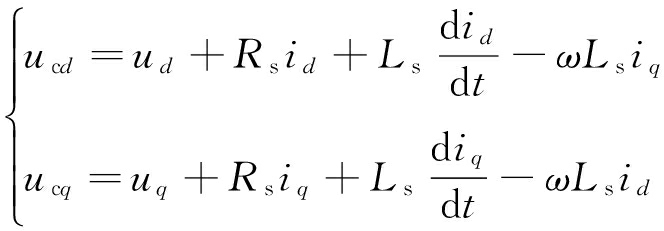 式中:ucd,ucq分别为换流器输出三相电压在d轴和q轴上的分量;ud,uq分别为牵引电动机定子端三相电压在d轴和q轴上的分量;id,iq分别为换流器输出三相电流在d轴和q轴上的分量;ω为三相输出电压、电流的基频角频率。
