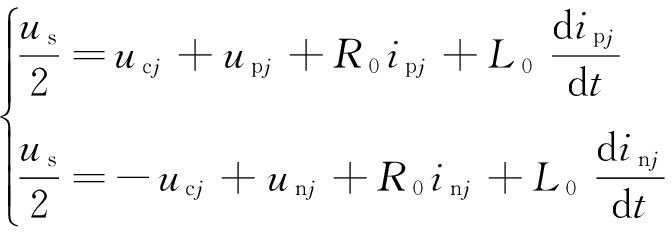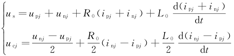 式中:Spji,Snji分别为j相上、下桥臂中第i(i=1,2,…,N)个子模块开关状态函数,表示子模块的投入状态与切除状态;ucpji,ucnji分别为j相上、下桥臂中第i个子模块的电容电压。