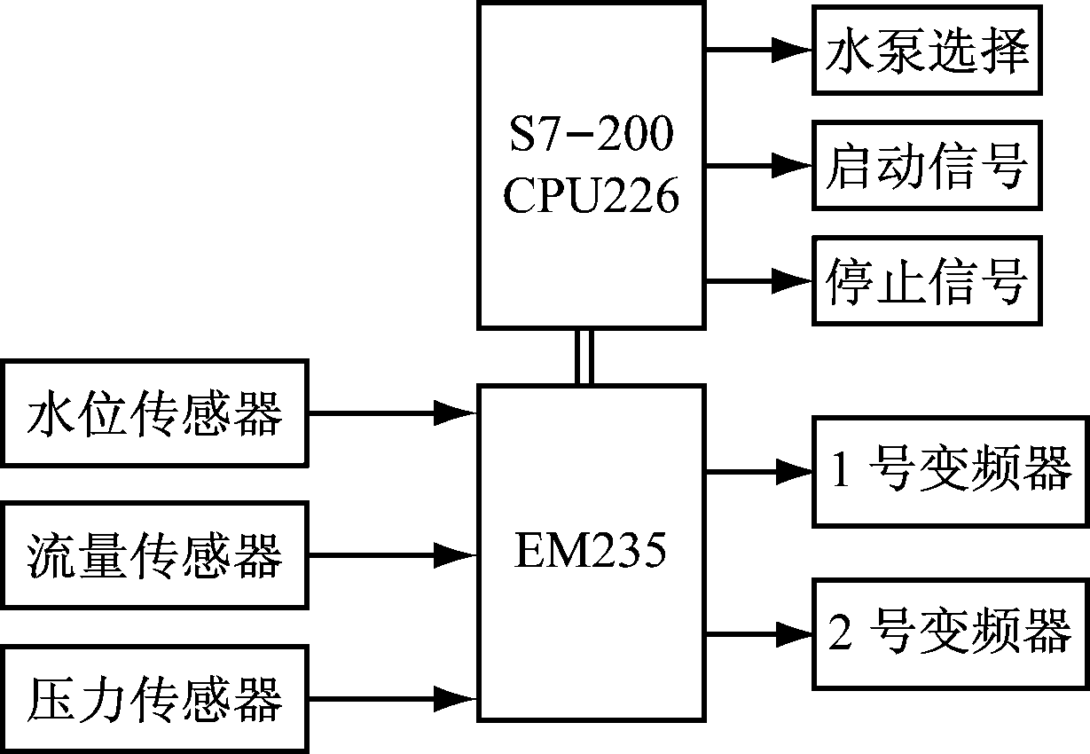通常情况下,被控对象的惯性时间常数TP为100 s左右,滞后时间τ小于10 s,即τ<<TP,S7-200系列PLC控制器完全可以满足控制要求。系统采用PID算法进行控制,恒压变频控制原理如图3所示。