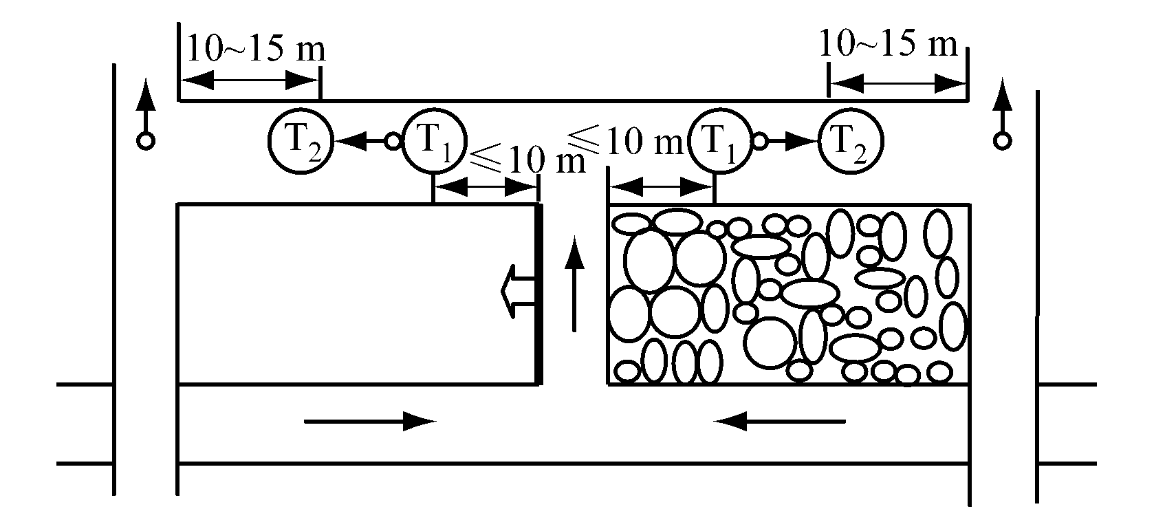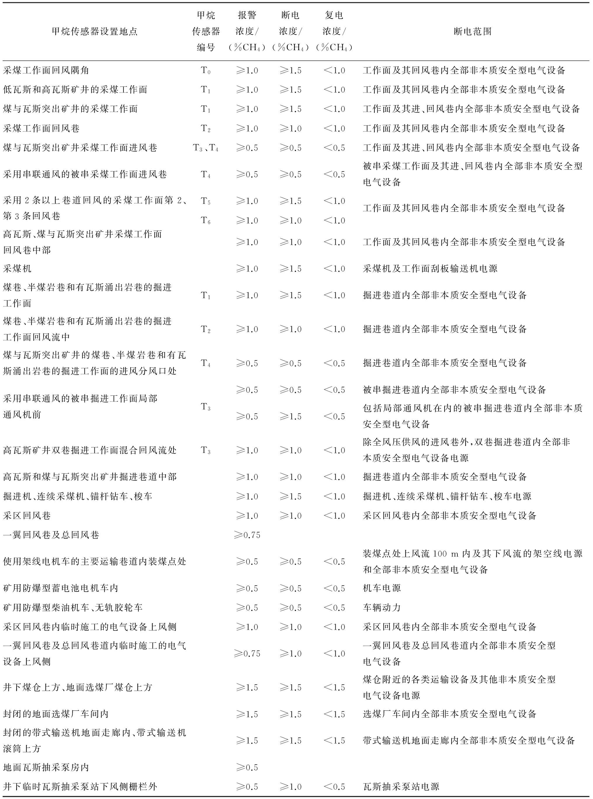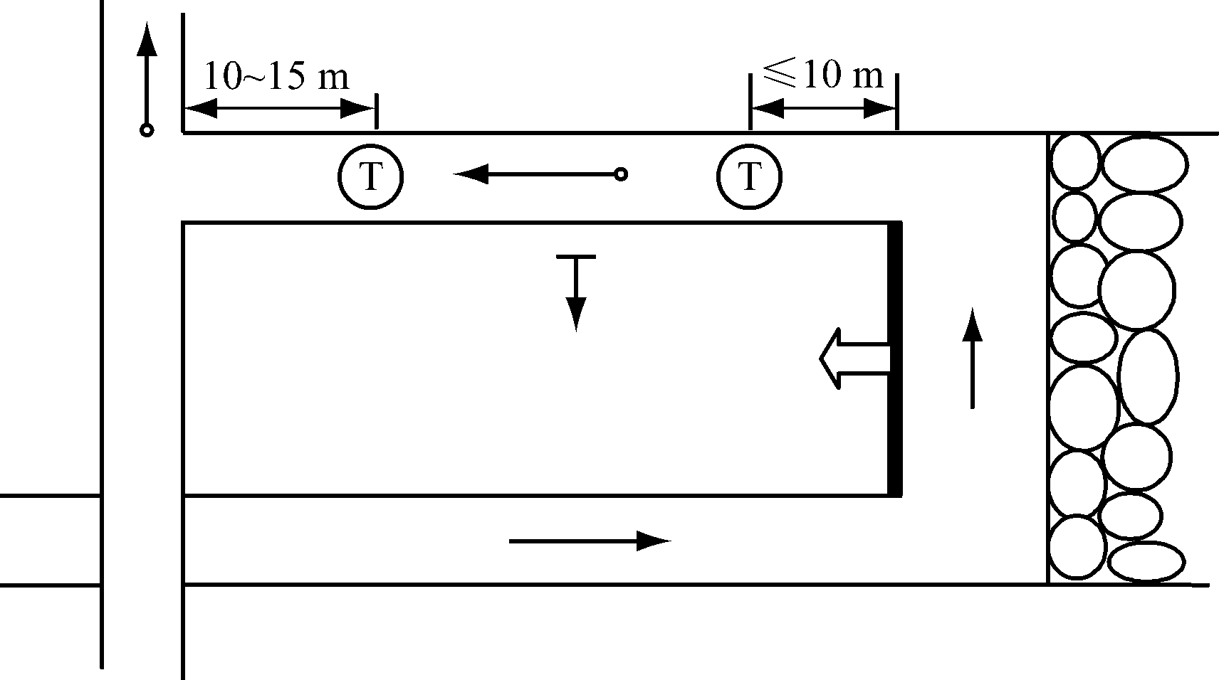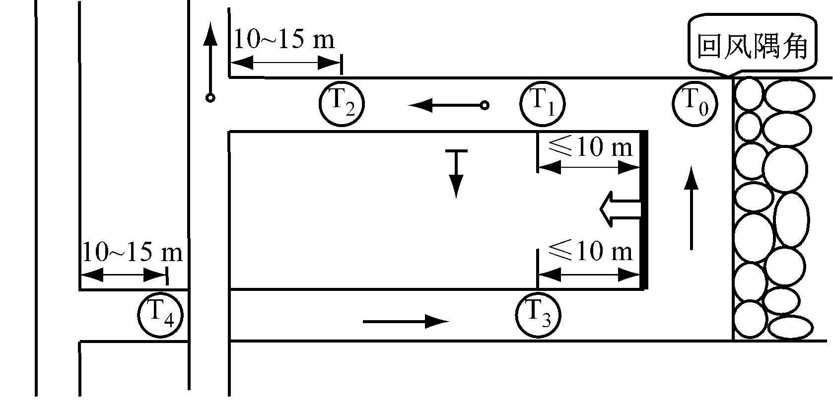 6.2.5 非长壁式采煤工作面甲烷传感器的设置参照上述规定执行,即在回风隅角设置甲烷传感器T0,在工作面及其回风巷各设置1个甲烷传感器。