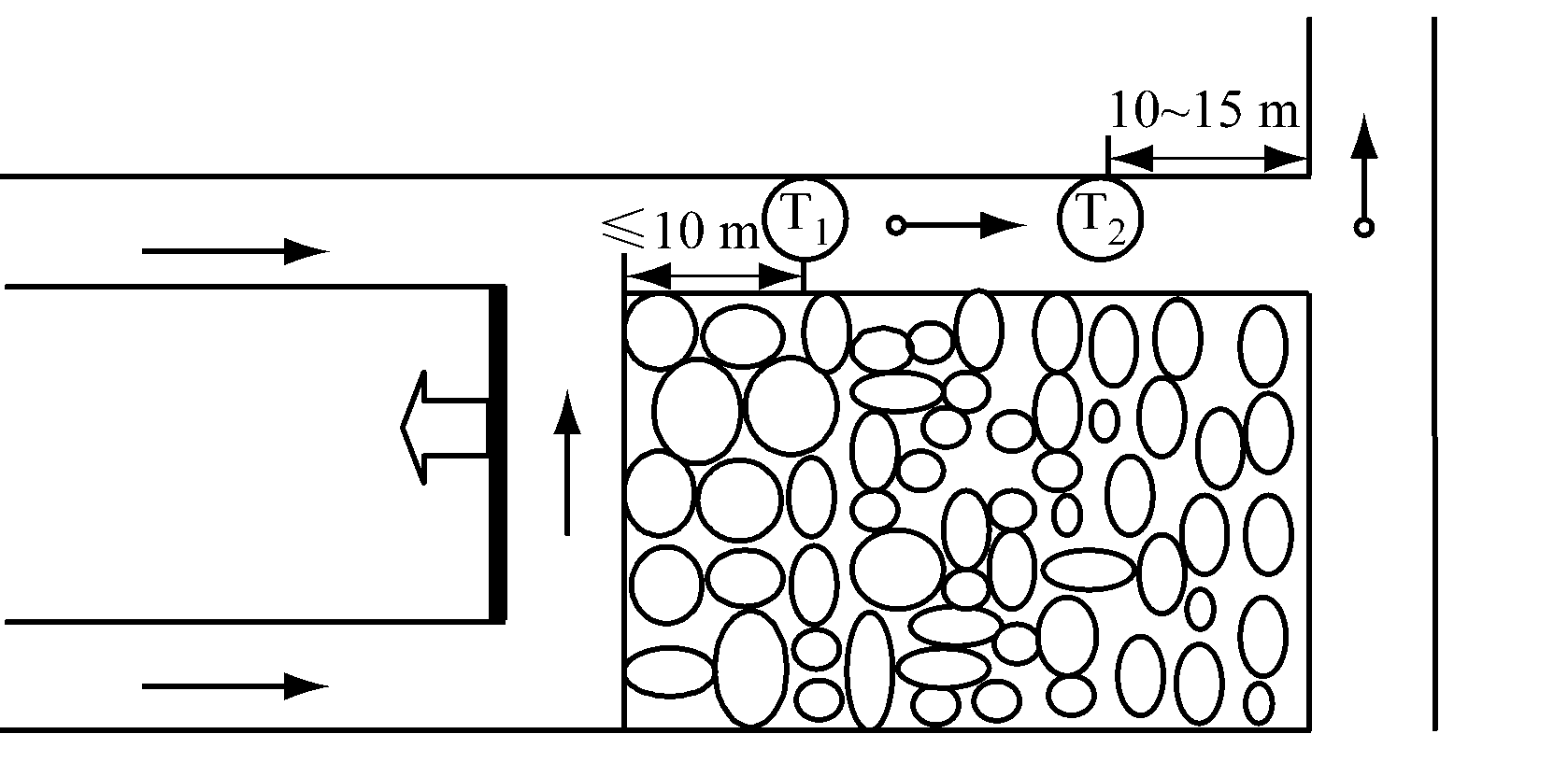 带式输送机滚筒下风侧10~15 m处应设置烟雾传感器。