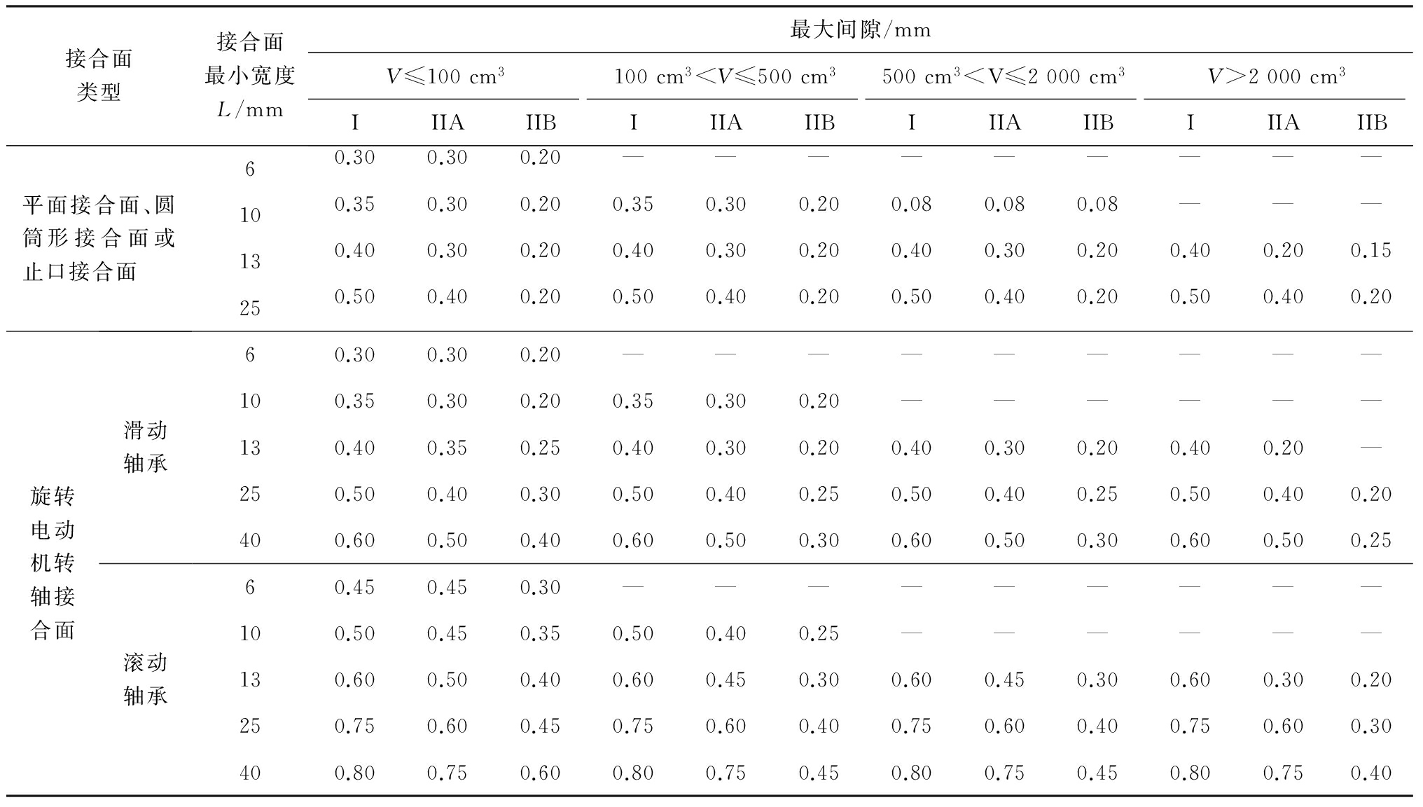表3 隔爆型电动机外壳接合面最小宽度和最大间隙