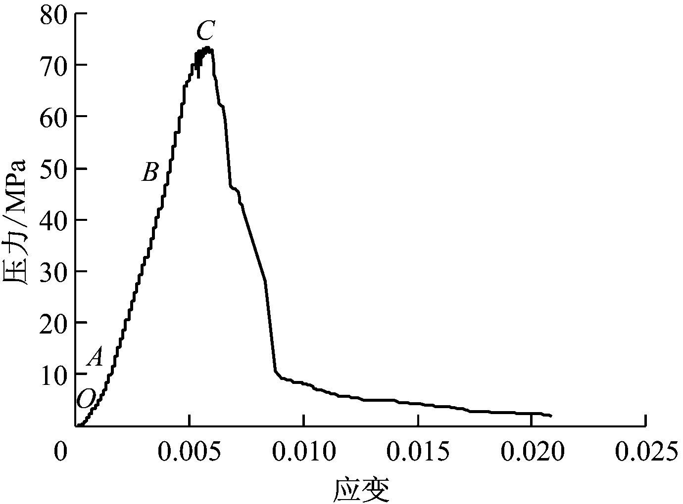 Fig.3 Stress-strain curve of sandstone under uniaxial compression