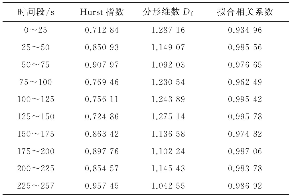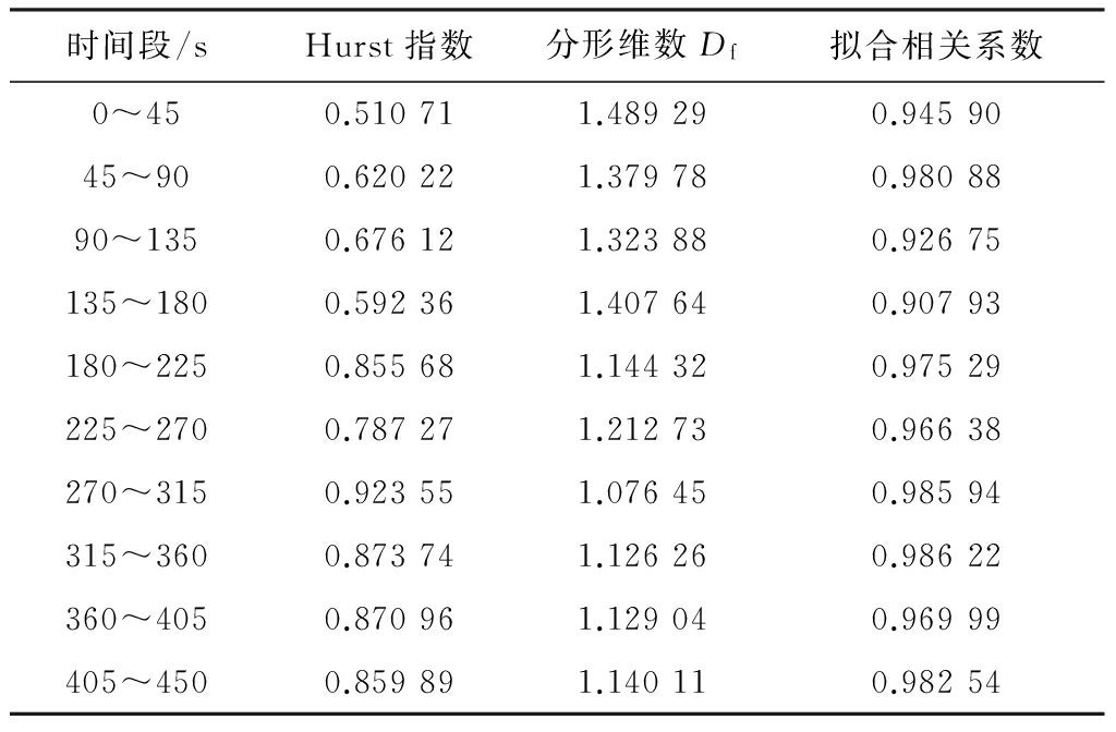 表1 2号砂岩试样Hurst指数值及分形维数Df值