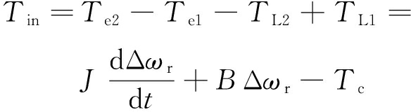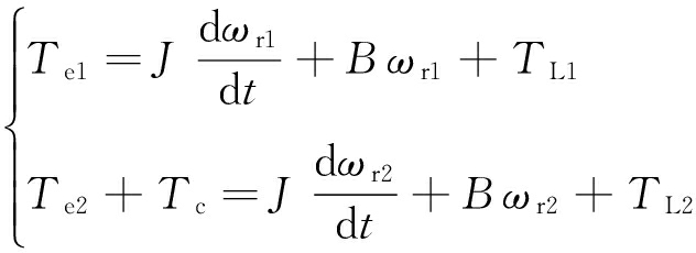 式中:J为电动机转动惯量;B为摩擦因数;TL1,TL2分别为1号、2号电动机负载转矩;Tc为由双电动机磁链角度误差产生的耦合转矩。