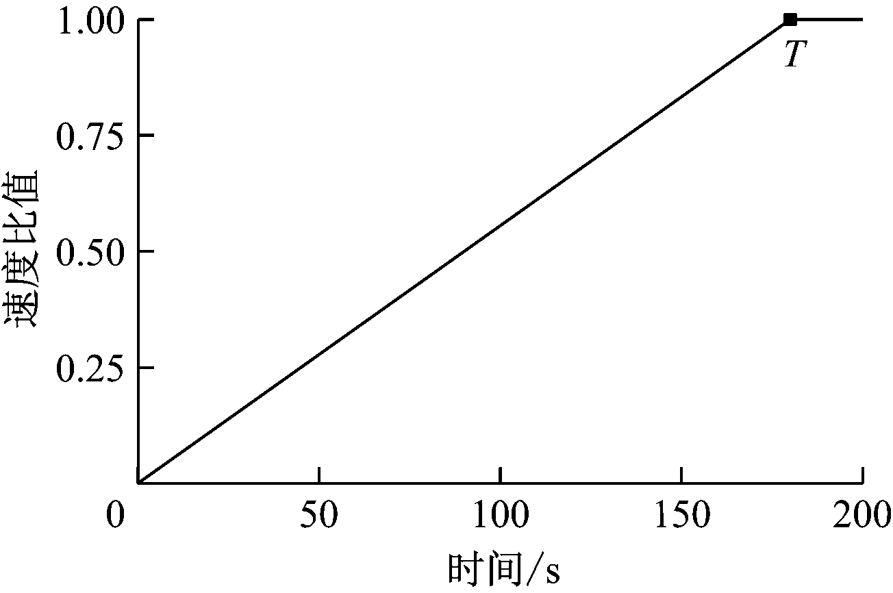 由式(3)计算出承载段和回程段的E值,再代入式(2)计算出cwb=760 m/s,cwr=1 960 m/s。由式(1)计算出Tv约为11 s,若取10倍Tv,则T≥110 s。本文设启动时间为180 s。