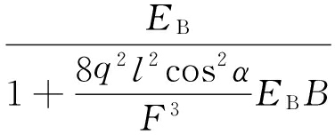 式中:EB为名义弹性模量,180 N/m;l为托辊间距,承载段和回程段l分别为1.5 m和3 m;α为输送机倾角,约为0°;F为输送带平均张力,承载段和回程段输送带平均张力分别约为185 kN和94.5 kN。