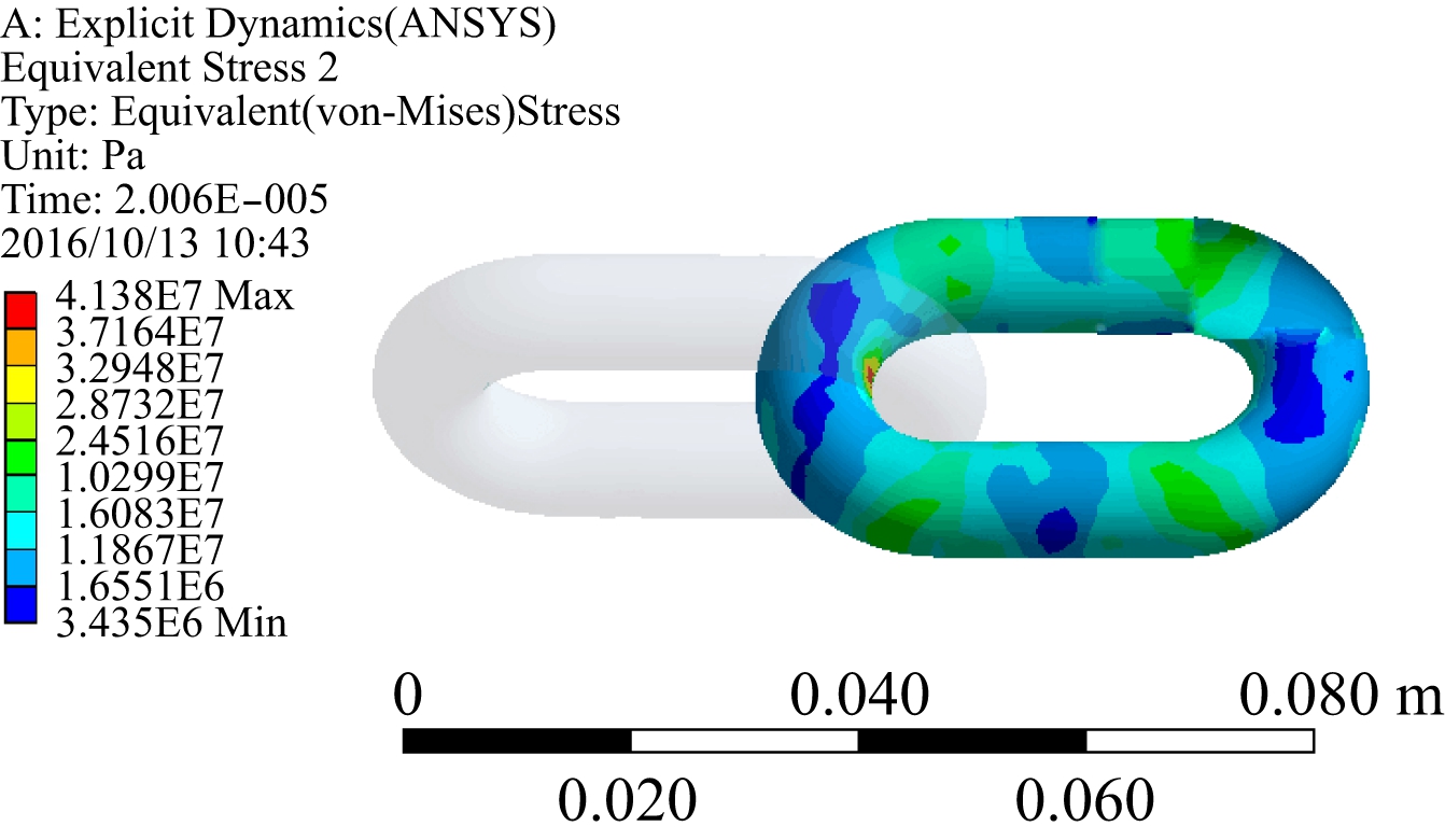 采用非线性动力分析软件ANSYS LS-DYNA对圆环链间的接触和碰撞过程进行模拟,得到接触产生的应力分布,用以验证理论分析的准确性。
