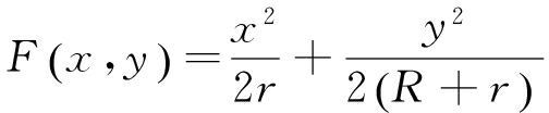 在实际应用中,链环的外表面与链轮接触,圆环方程可转换为用z表示,即