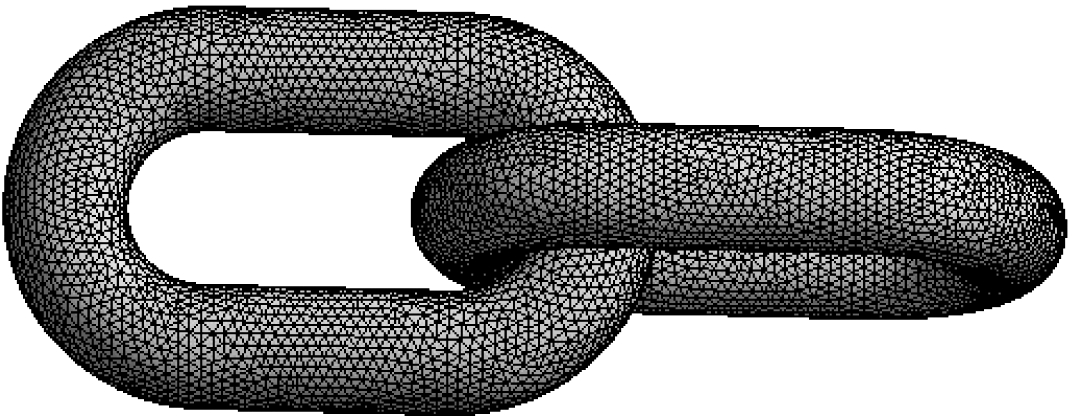 随着圆环链的广泛应用,国内外学者对圆环链的结构设计、制造、试验等方面进行了深入研究。文献[3]对不锈钢链在铸造机械上产生的疲劳损伤进行了研究,结果表明,弯曲疲劳引起的失效最终会导致链环断裂;文献[4]利用有限元法对圆环链受拉伸负荷时的应力分布进行了分析,并用力学理论说明了链环间的接触对断链的影响;文献[5]对矿用高强度圆环链强度特性进行了分析,得出了影响圆环链疲劳强度的主要因素为脉动载荷的加载速率。以上文献主要是针对圆环链各元件结构进行研究,没有对圆环链传动过程的接触动力学进行研究。为此,本文通过有限元法对圆环链接触问题进行分析,并利用线性疲劳累积损伤理论对其进行疲劳寿命估算,为圆环链的设计和优化提供参考[6]。