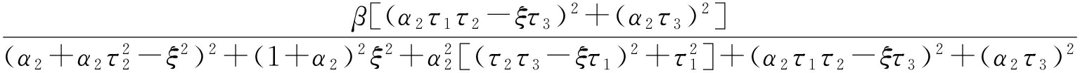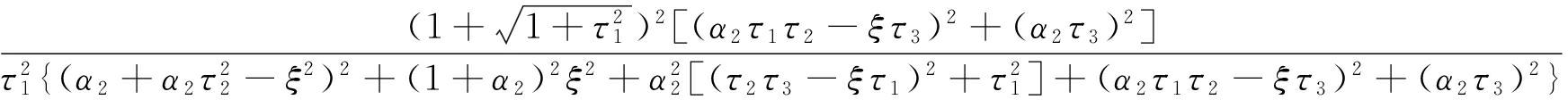 为了研究系统输出功率增益与特性参数之间的内在关系,令式(1)中阻抗矩阵行列式的虚部为0,忽略高次项2α1α2τ1τ2τ3,得到系统在ξ=0或ξ=±