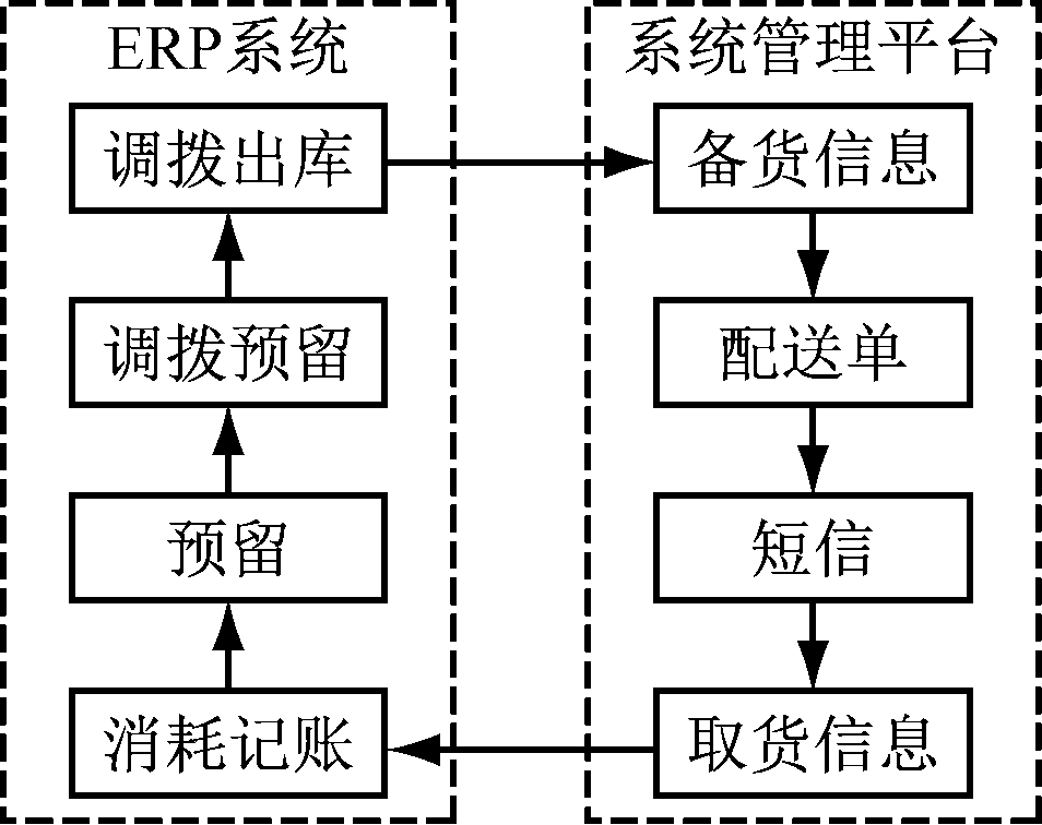 (3) 系统管理平台提供备货确认接口,ERP系统调用该接口将调拨出库的信息传输到系统管理平台,生成备货信息。