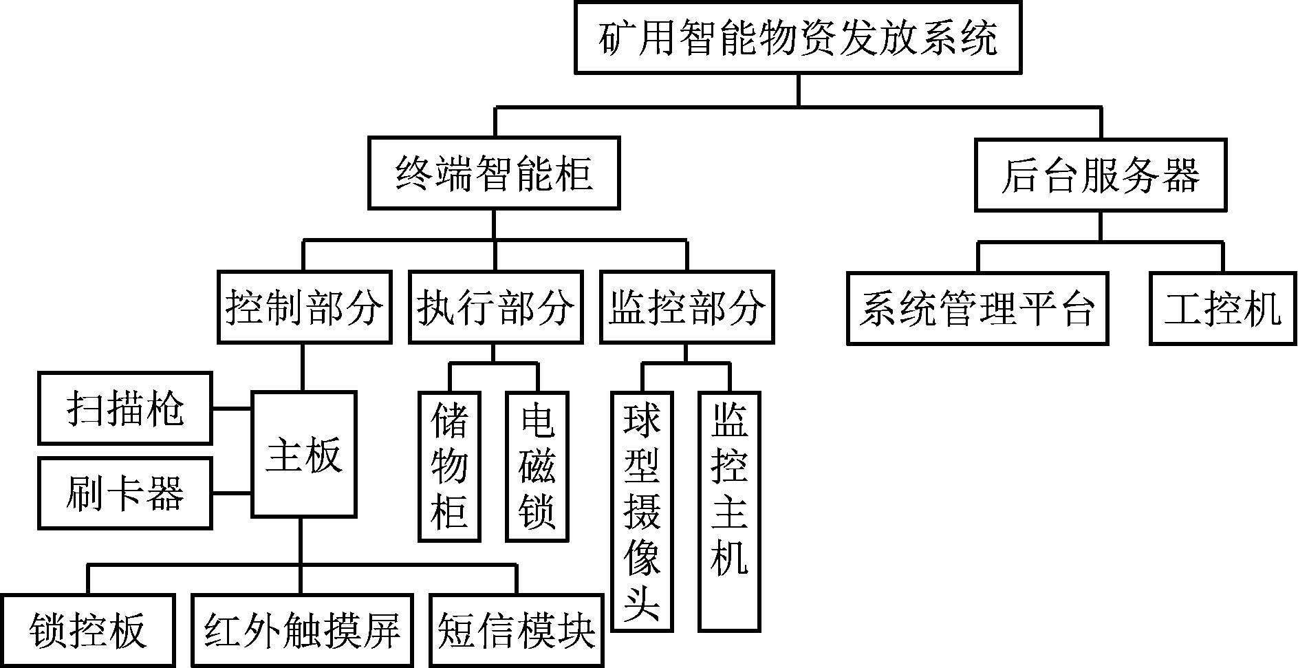 矿用智能物资发放系统主要包括终端智能柜和后台服务器两部分,如图1所示。