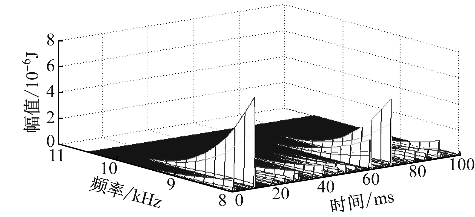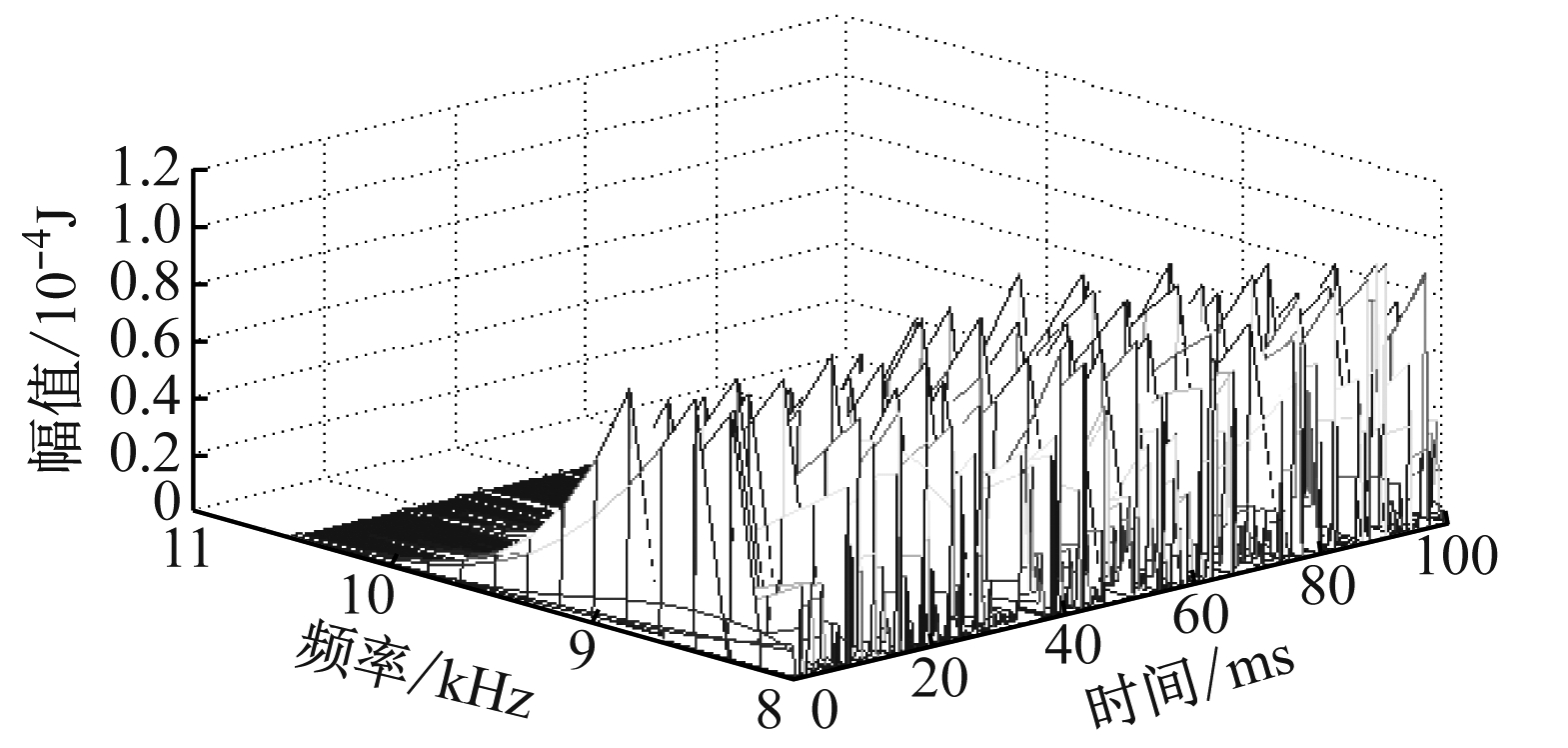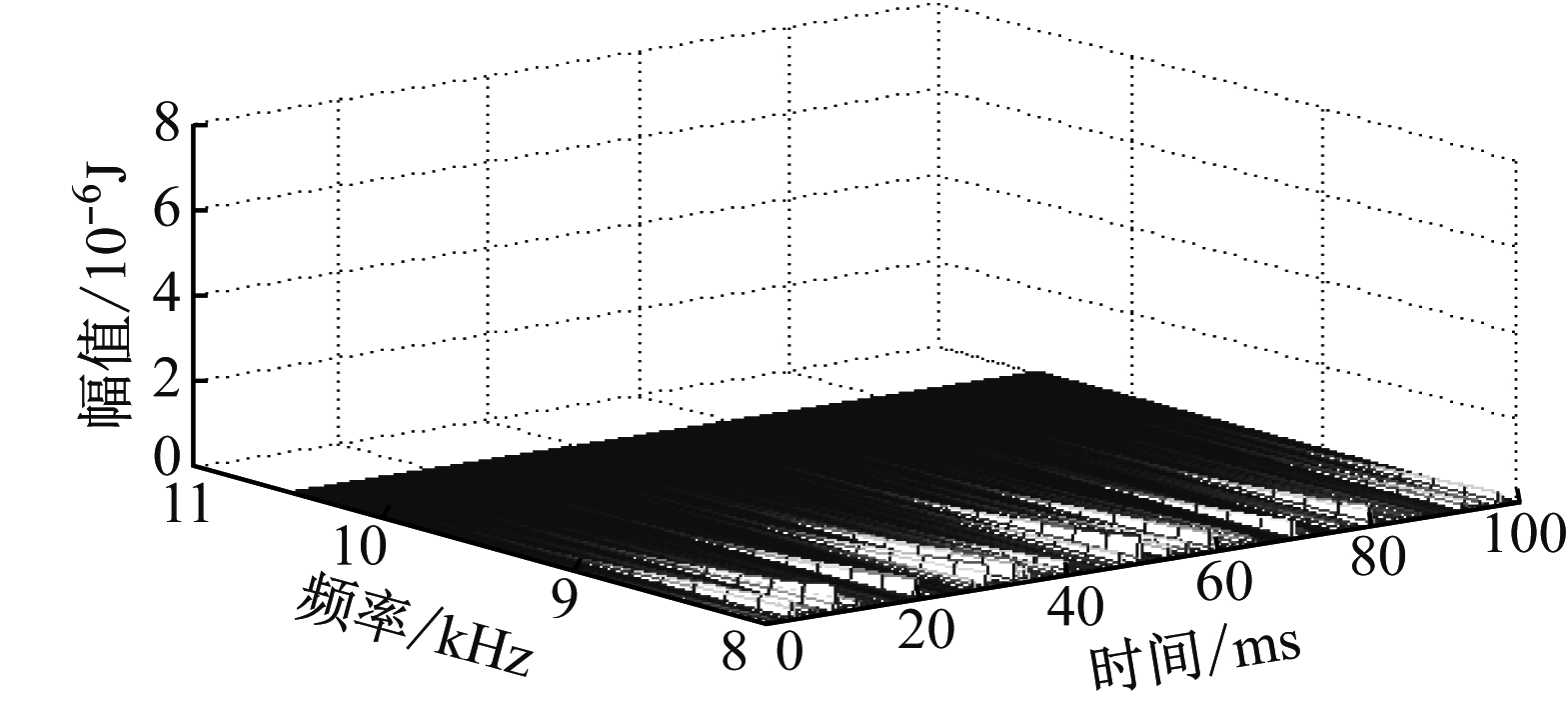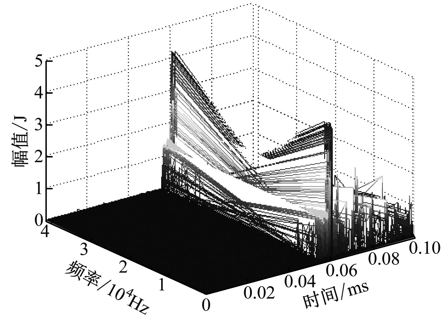 典型负载在串联型故障电弧发生前后电流信号的特征IMF时频谱如图2所示。线路正常运行时,特征IMF的时频谱幅值较小;在0.06 ms线路发生串联型故障电弧后,时频谱幅值相对线路正常运行时明显增加。针对特征IMF的时频谱幅值设置合适的阈值,即可作为串联型故障电弧检测的依据。