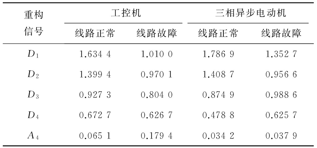 表1 典型负载在线路正常运行和发生串联型故障电弧时电流信号的各重构信号近似熵