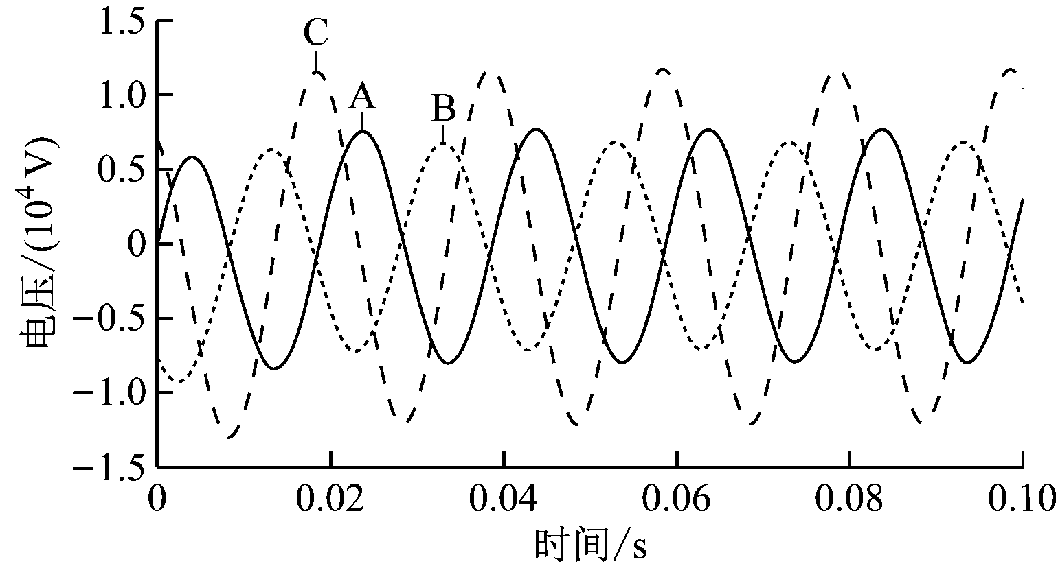 图4 各相电压的频数分布折线图