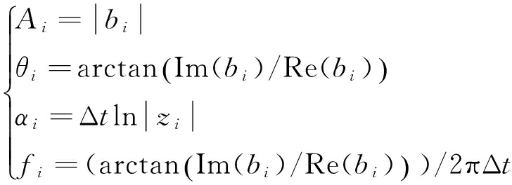 (6)利用式(18)计算幅值、相位、衰减因子、频率: