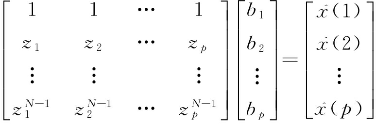 (3) 求多项式(式(15))的根zi(i=1,2,…,p)。