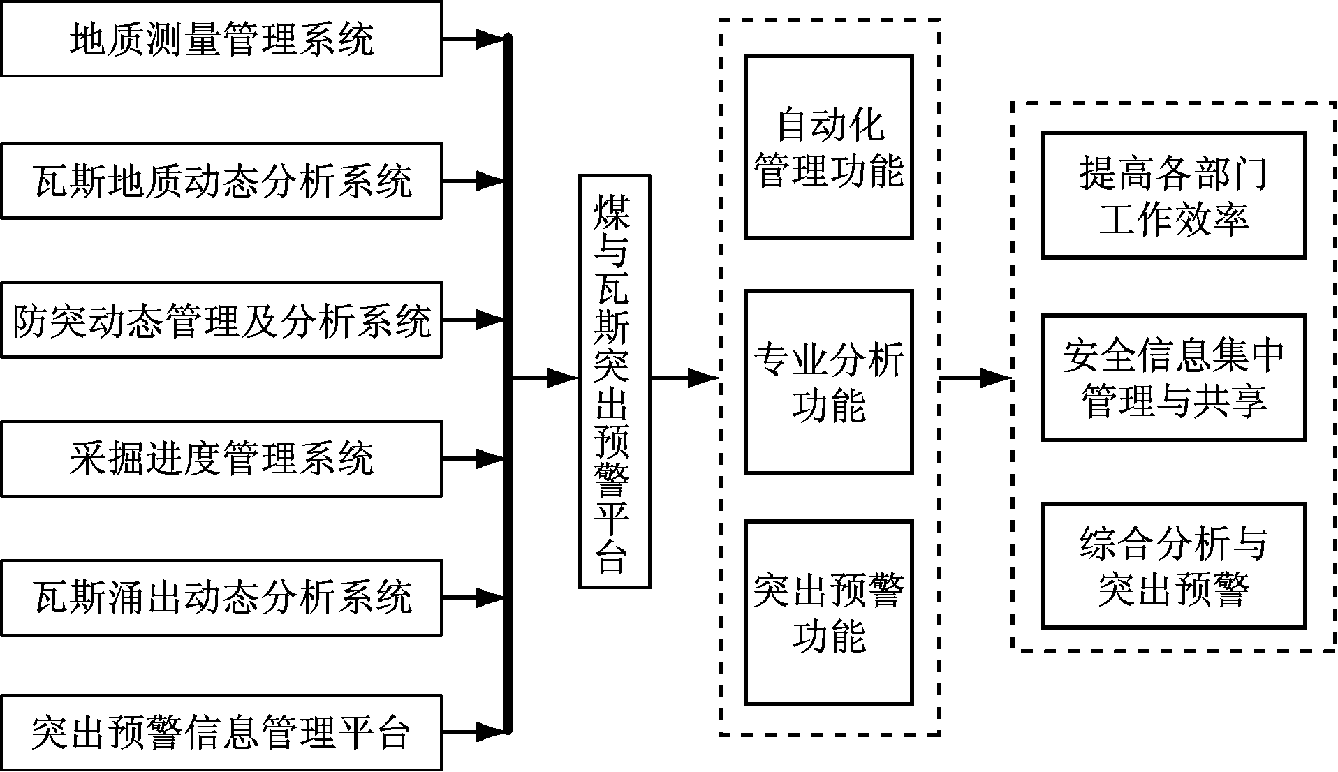 Fig.1 Structure and functions of comprehensive early warning system of coal and gas outburst