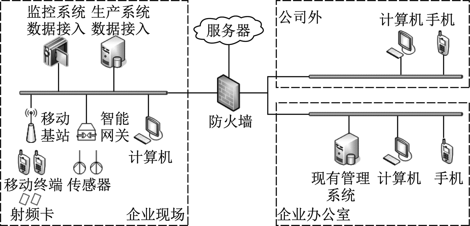 图2 基于物联网的煤矿危险源安全管理系统硬件架构