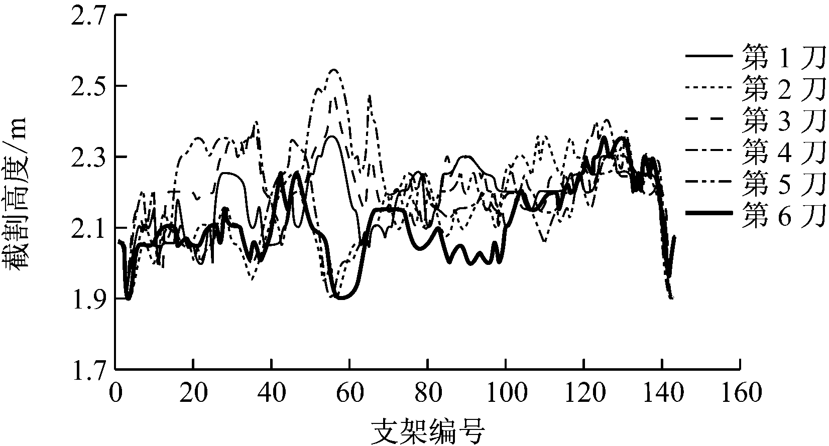 图5 一个生产班连续6刀截割高度