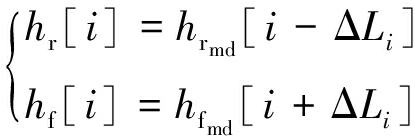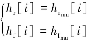 定义数组:上一刀上行时顶板高度hrmu[i],i=0,1,…,N,上一刀上行时底板高度hfmu[i],上一刀下行时顶板高度hrmd[i],上一刀下行时底板高度hfmd[i],当前顶板高度hr[i],当前底板高度hf[i]。根据测量的采煤机水平位移,可计算出采煤机所在的采样区间编号:
