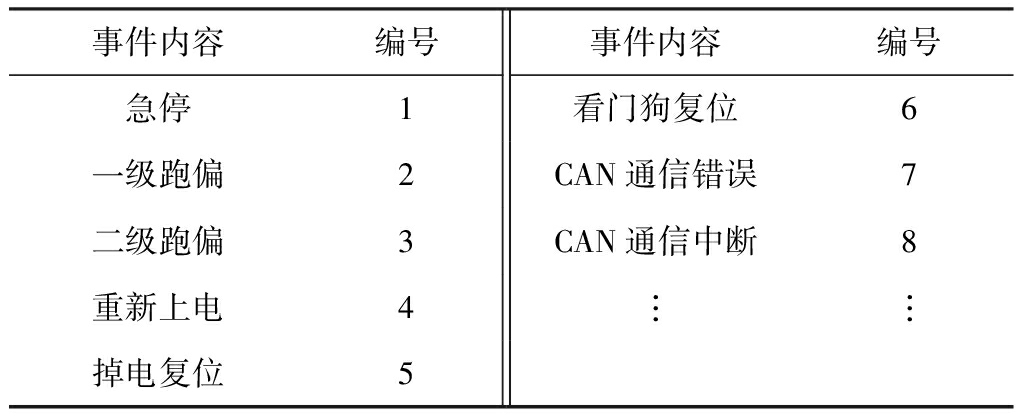 重要操作和异常状态称为事件。对所有事件统一编号,记录年、月、日、时、分、秒和事件编号。以急停扩音电话为例,其事件列表见表1。