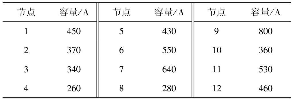 式中:Ki为导线电流惩罚因子;Ii为支路i的电流;Ihi为支路i导线的载流量。