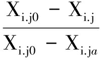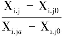 假定Xi.j0为第i个因素的第j个评估指标ei.j的初始值,Xi.j为ei.j的实际测量值,Xi.ja为ei.j的注意值。