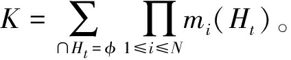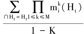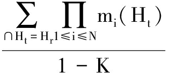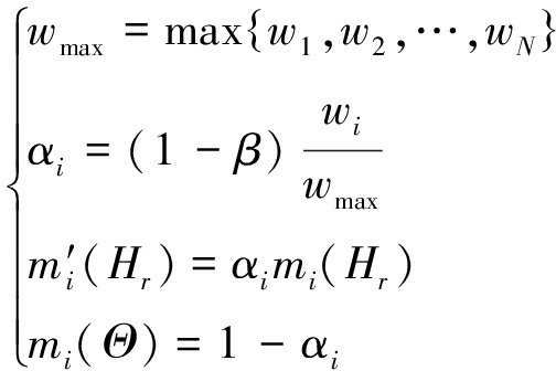 i(Hr)为预处理后评估等级Hr的基本概率赋值;mi(Θ)为第i个因素所属状态等级不确定性的基本概率赋值。