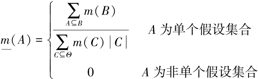 为单个假设集合A经Bayes近似后的Mass函数;|C|为集合C中基本假设的个数。